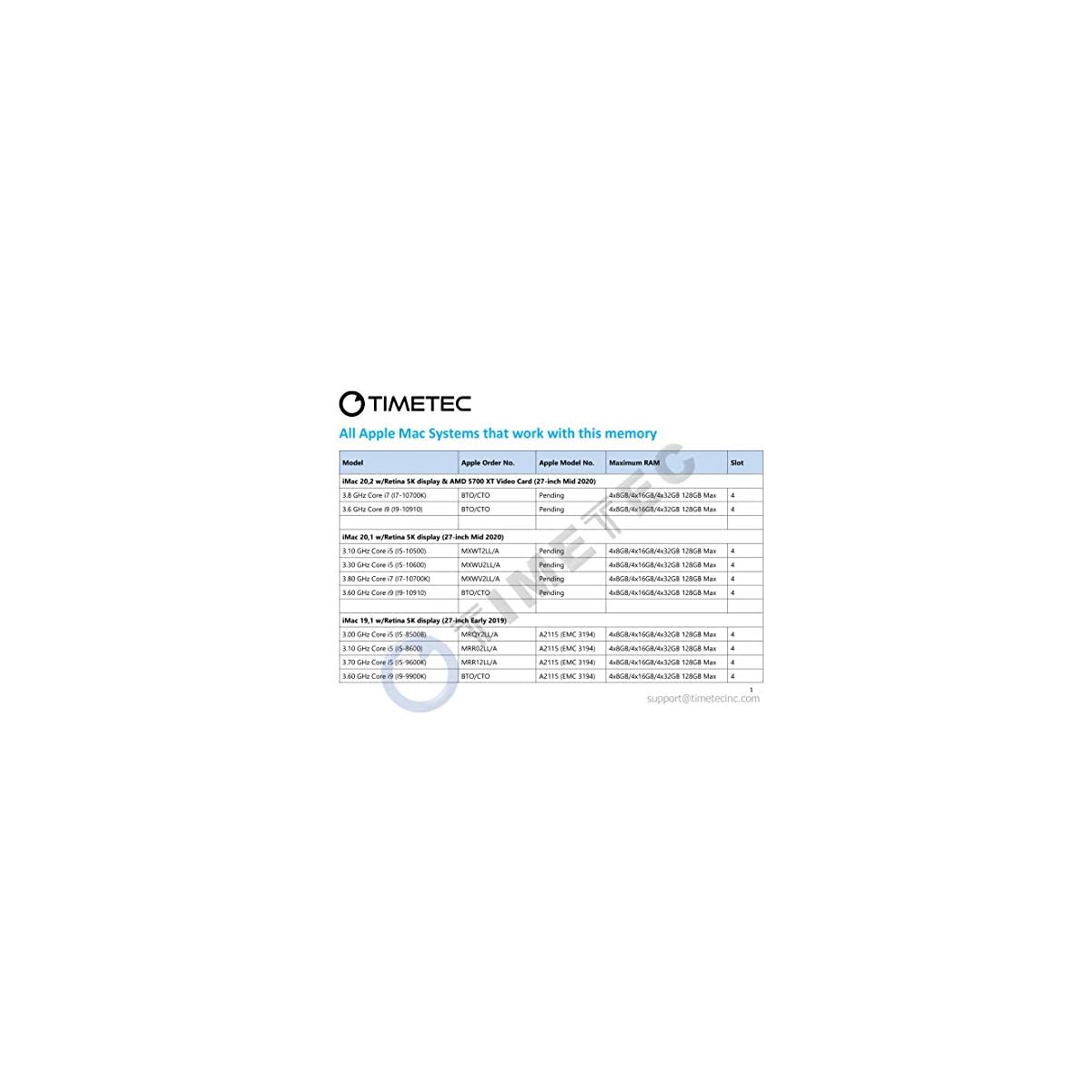 HomeComputer ComponentsRAM Timetec 128GB KIT(4x32GB) Compatible for Apple DDR4 2666MHz for Mid 2020 iMac (20,1 / 20,2) / Mid 2019 iMac (19,1) 27…
