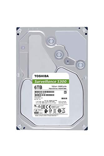 Toshiba 6TB S300 Pro Surveillance 3.5″ SATA Internal Hard Drive. 24/7 Operation, Supports 64 cameras, 256MB Cache, 180TB/Year workload,CMR,3yr Warranty (HDWT360UZSVA).