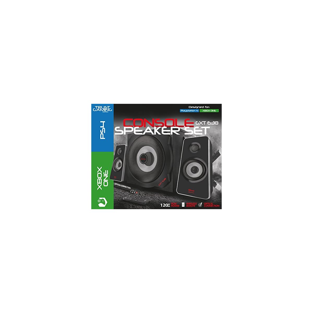 2.1 speaker set with optical input for high quality digital sound and deep bass.