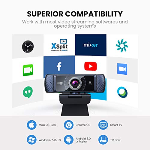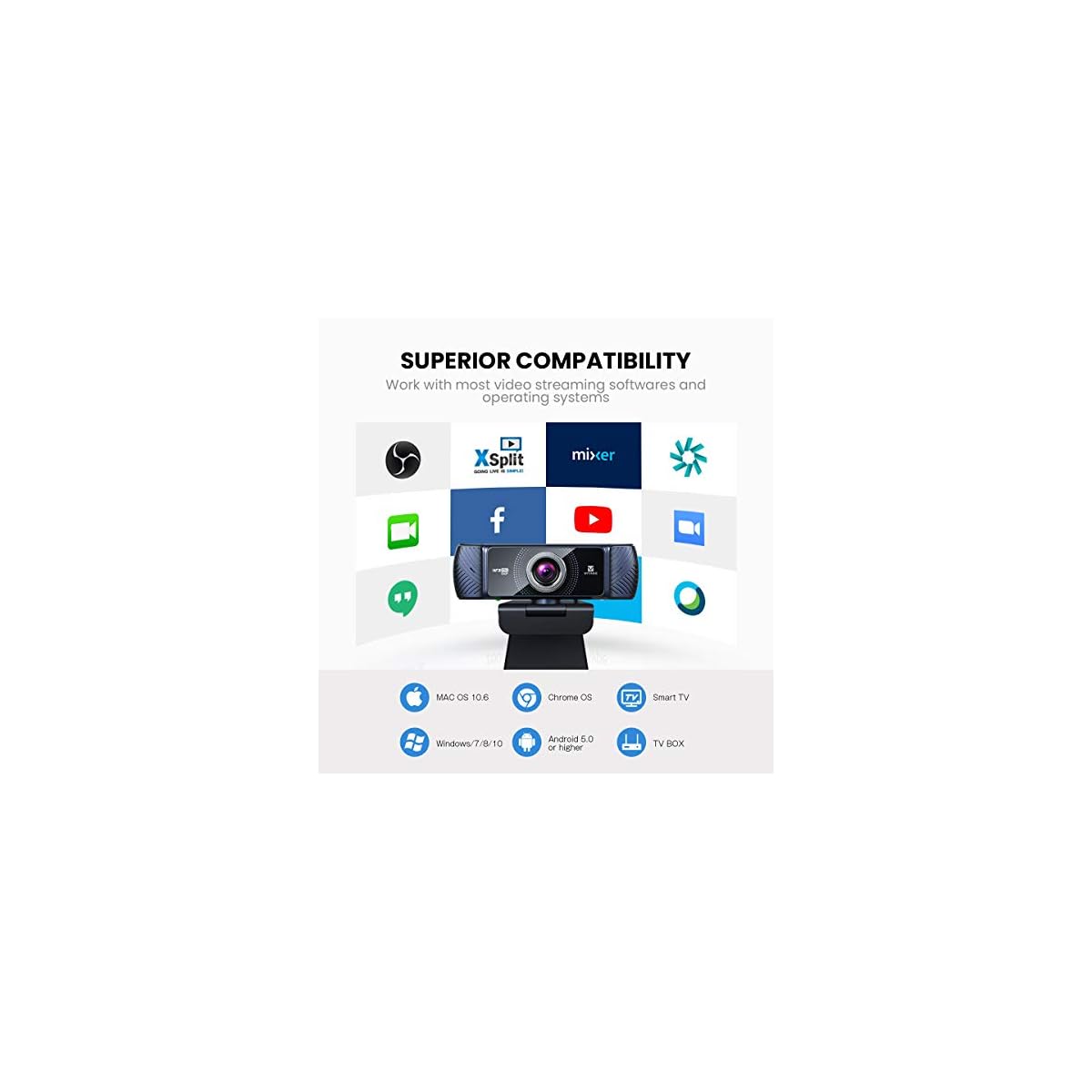【PLUG & PLAY】Quick and easy setup in 1 minute. No drivers needed. Compatible with Windows 7 8 10, Mac OS 10.6 and above. Supports Chrome OS, Smart TV, and TV BOX Android 5.0 or higher. Works with social media and gaming such as Skype, OBS, Twitch, YouTube, Facebook, Xbox One, GoReact and more. (If you’re unstable to access Windows 10’s preinstalled Skype, please go to the Skype official website to download the desktop version.)
