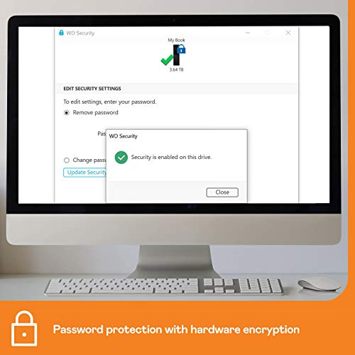 Password protection with built-in 256-bit AES hardware encryption with WD Security software, just set your own personalised password to help keep your content private and safe