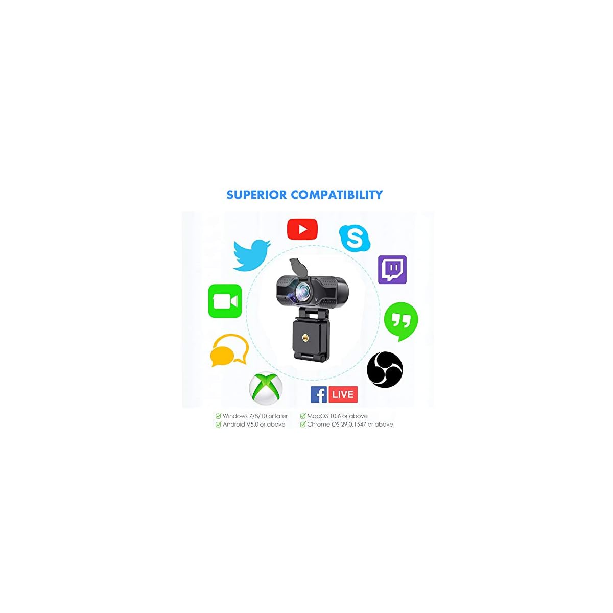 - USB webcam compatible with Windows, Mac OS, Chrome OS, Smart TV, android and more.