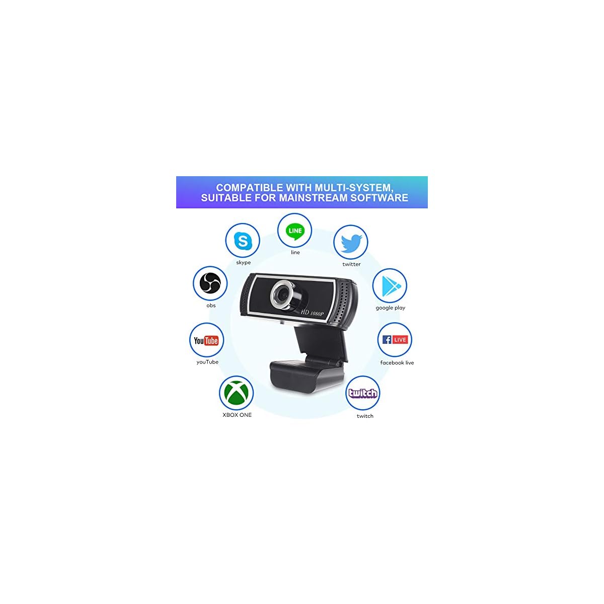 🖥【UNIVERSAL COMPATIBILITY】–Versatile USB webcam 1080P widely works with Windows 2000 / XP / win7 / win8 / win10 / Vista 32bit / Mac / Android TV, and the like. Compatible with Skype, OBS, YouTube, Facebook, Twitter, Twitch
