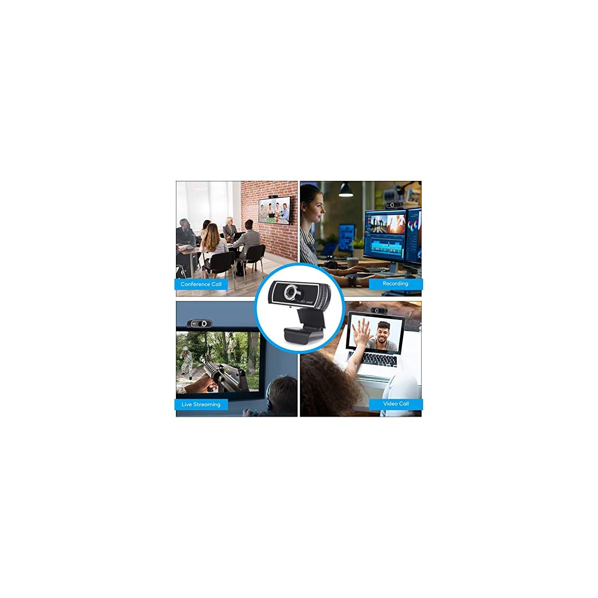 🖥【1080P FULL HD】–Webcam 1080p with FULL HD premium glass lens, provides crisp image and crystal clear video, great for professional quality video chatting or video recording