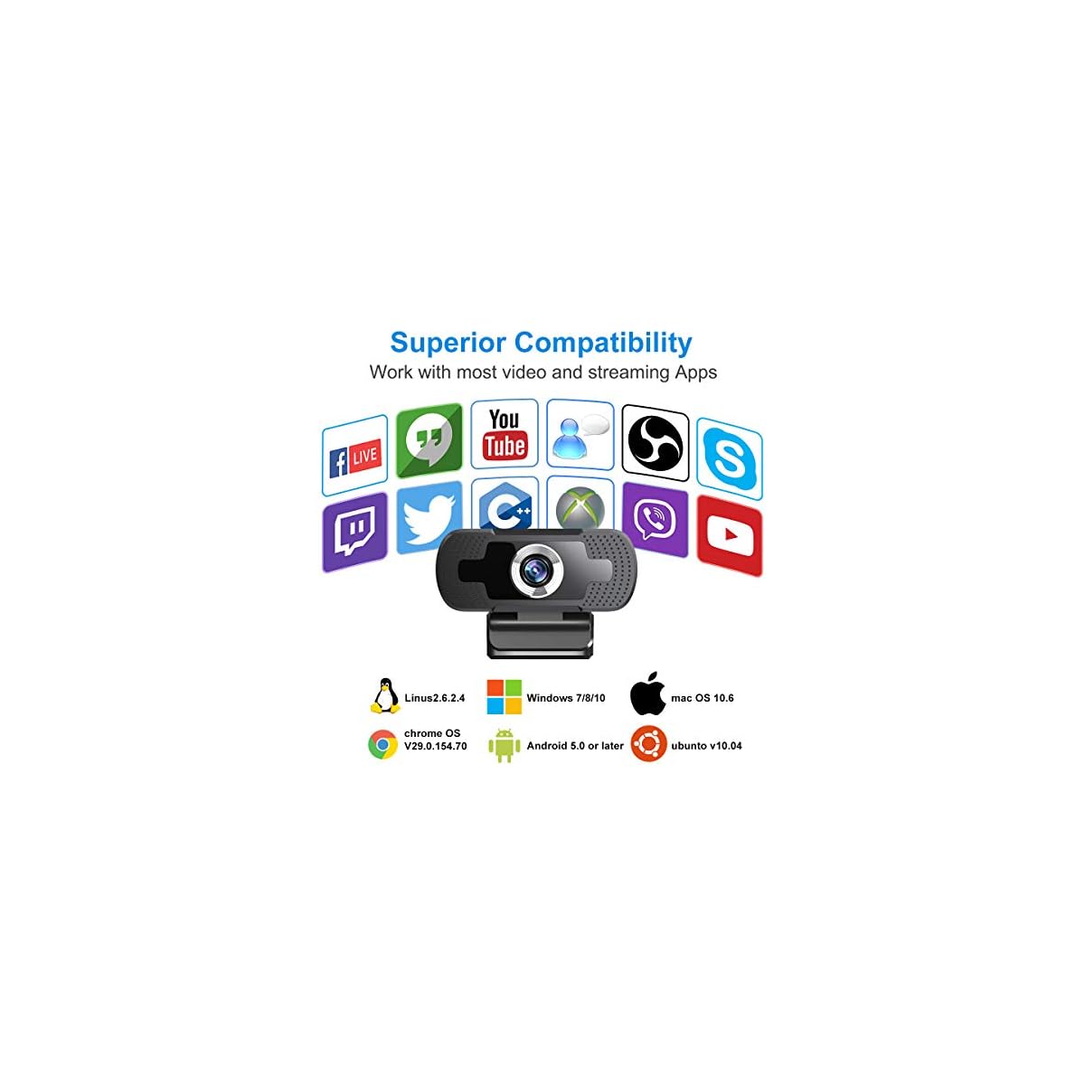 Pro stream webcam supports OBS, Mixer, YouTube, Facebook, XSplit, Skype, ZOOM, Amazon Chime, Google Hangouts, Twitter, Twitch, WhatsApp, Yahoo, MSN, Android IPTV and FaceTime for Mac, laptop and PC.