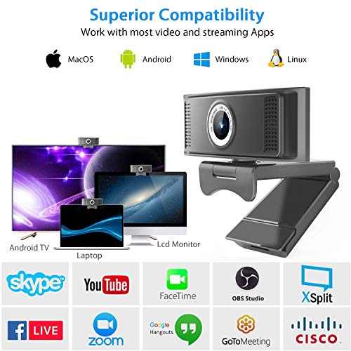 【Webcam with microphone】Built-in noise reduction microphone, excellent stereo audio, can achieve clear and natural recording. That is your only option for video combined with a built-in microphone, providing the most productive video conferencing experience even in noisy environments.